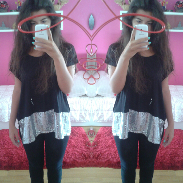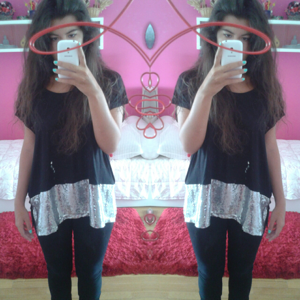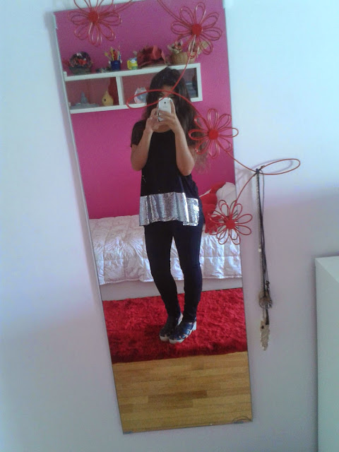 Adoro preto, comprei esta camisola nos saldos na pull and bear à alguns anos e só agora é que tive coragem de a usar por ser muito chamativa e assim... mas agora adoro-a, apesar de ainda quase nunca a usar... acho-a um pouco complicada de a conjugar com outra cor sem ser preto, o que torna o look um pouco pesado.